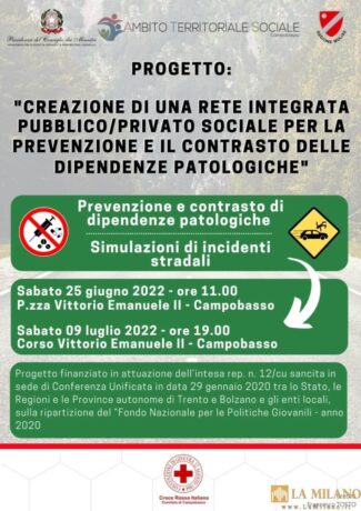 Campobasso, attività di sensibilizzazione per le dipendenze. L’Ambito Territoriale Sociale di Campobasso, soggetto attuatore del “Fondo Nazionale Politiche Giovanili – anno 2020”, ha definito il progetto “Creazione di una rete sociale integrata pubblico/privata per la prevenzione e contrasto delle dipendenze patologiche”. Il progetto, proposto dall’Ambito Sociale Territoriale di Campobasso intende promuovere una cultura alla legalità […]